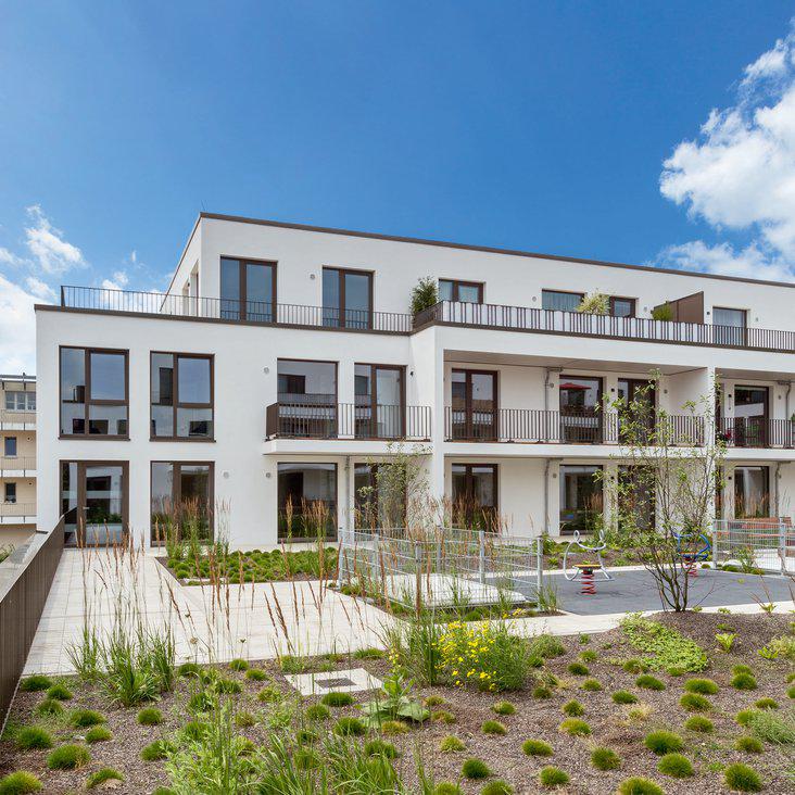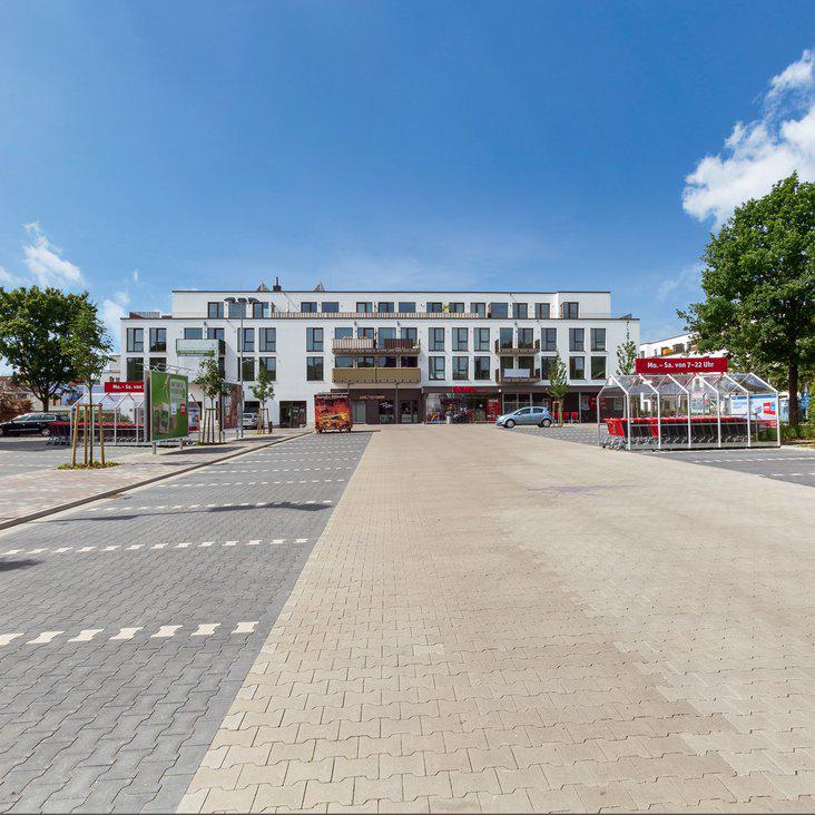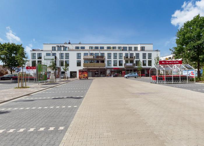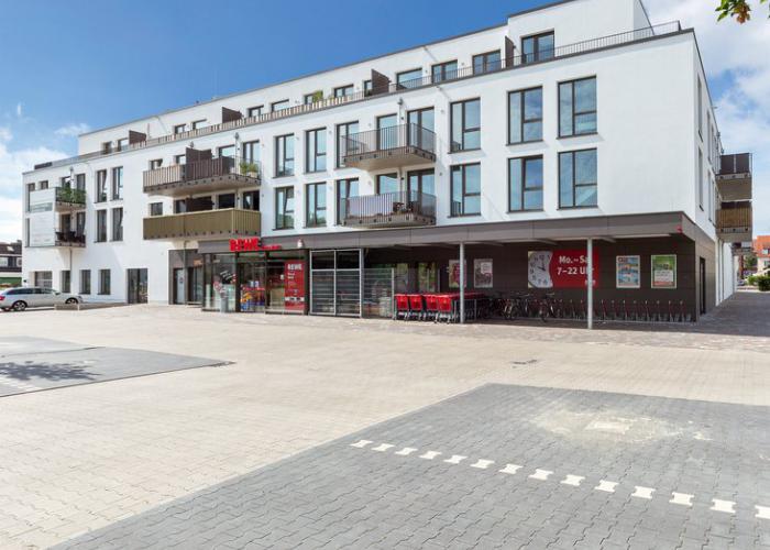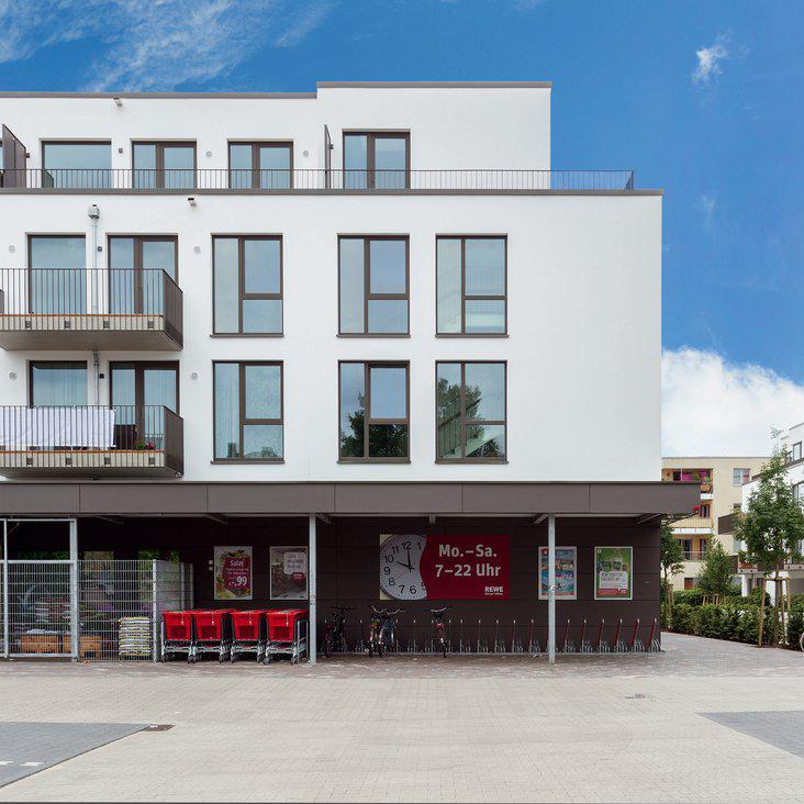Neubau von insgesamt 109 Wohnungen, 60 Tiefgaragen- und ca. 90 Außenstellplätzen, sowie einem neuen REWE-Markt.